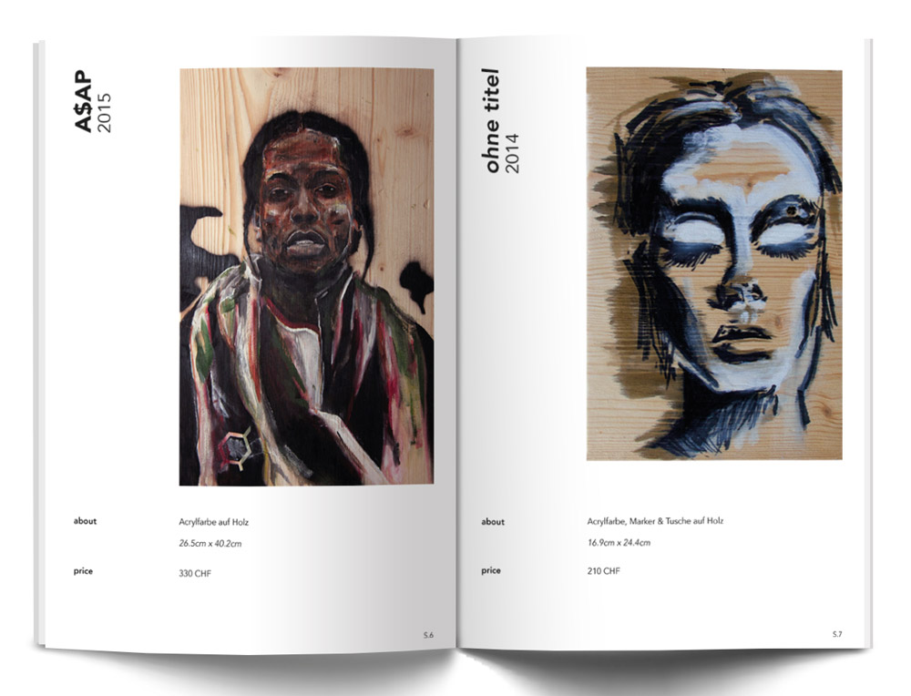 Für eine Kunstausstellung eines Freundes im Ziegel oh Lac in Zürich, gestaltete ich den Ausstellungskatalog. Darin befinden sich alle ausgestellten Bilder mit Detailinformationen und einem Vorwort, geschrieben von dem Künstler selbst.